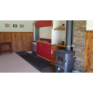 There is also a large hot-house for all year round organic vegetables, berry tunnel houses and an orchard with numerous fruit varieties and free ranging chooks.The property runs mainly on alternative power which is generated by Solar panels. This enables the owners to run ‘off grid’ for much of the time.
